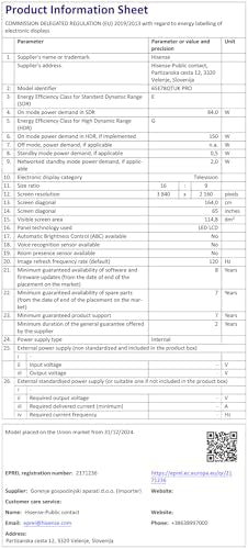 model number: 65E78QTUK PRO